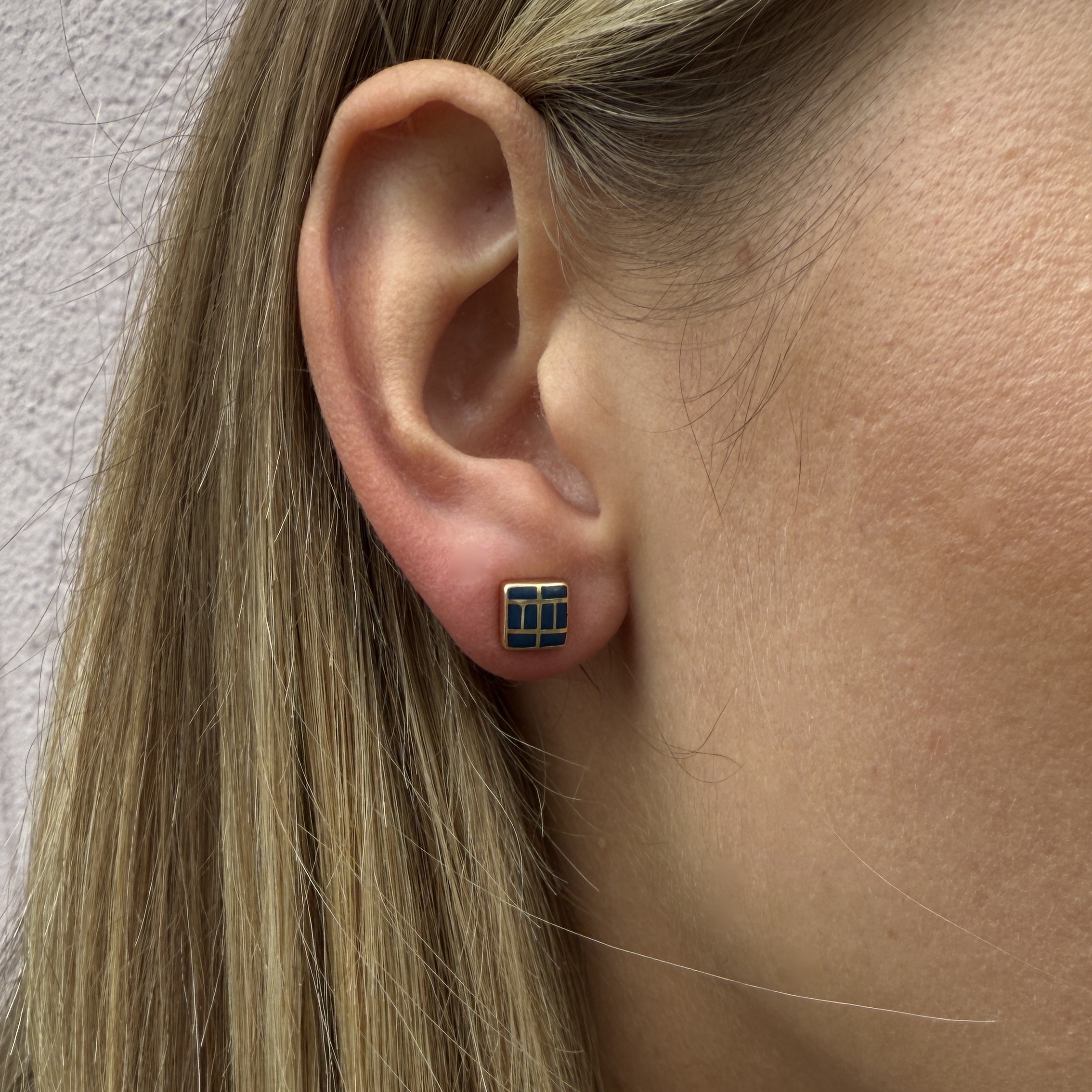 Diese filigranen "Tetris" Ohrstecker aus 18 Karat Gelbgold mit ihrer leuchtend blauen Emaille sind wie kleine Kunstwerke, die Ihre Persönlichkeit zum Strahlen bringen. Jeder Blick in den Spiegel wird zu einem Moment purer Freude – denn diese vintage Schätze erzählen von zeitloser Eleganz und dem Mut zur Individualität. Ein Schmuckstück, das nicht nur getragen, sondern gefühlt wird und jeden Tag zu etwas Besonderem macht.