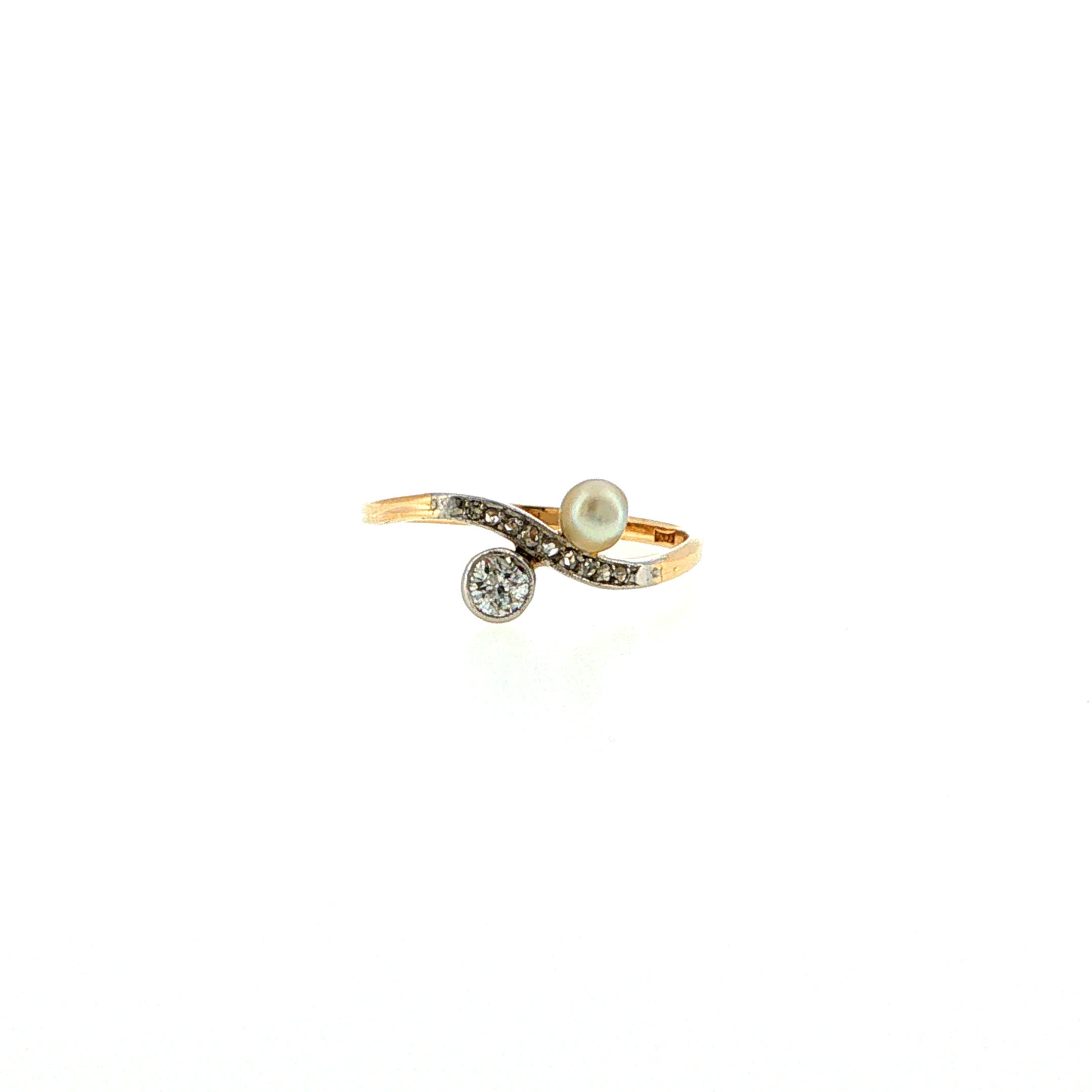 Ein antiker "Toi et Moi" Ring aus 1920 – ein poetisches Versprechen zweier Herzen, die sich für die Ewigkeit finden. Diamantrosen und eine zarte Perle vereinen sich in platiniertem Gold zu einem zeitlosen Liebesgeständnis, das schon ein Jahrhundert lang von wahrer Verbundenheit erzählt. Spüren Sie, wie dieser seltene Schatz Ihre eigene Liebesgeschichte mit der Romantik vergangener Zeiten verwebt.