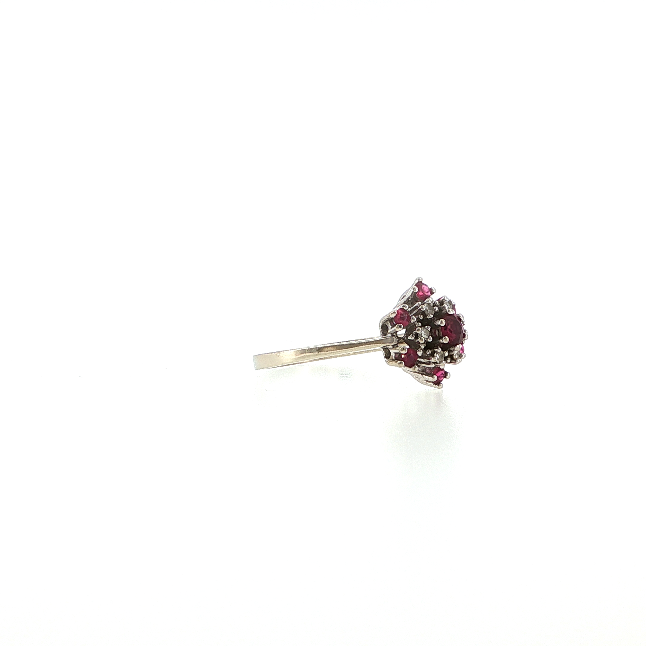 Ein Ring, der die zarte Poesie vergangener Zeiten in sich trägt – seine sechs Diamanten und sieben Rubine erzählen von ewiger Liebe und Momenten, die das Herz für immer berühren. Wie eine blühende Blume aus den goldenen 60ern umschmeichelt er Ihren Finger und macht jeden Augenblick zu einer kostbaren Erinnerung. Ein Schmuckstück, das nicht nur getragen, sondern gefühlt wird – für die Frau, die weiß, dass wahre Schönheit zeitlos ist.