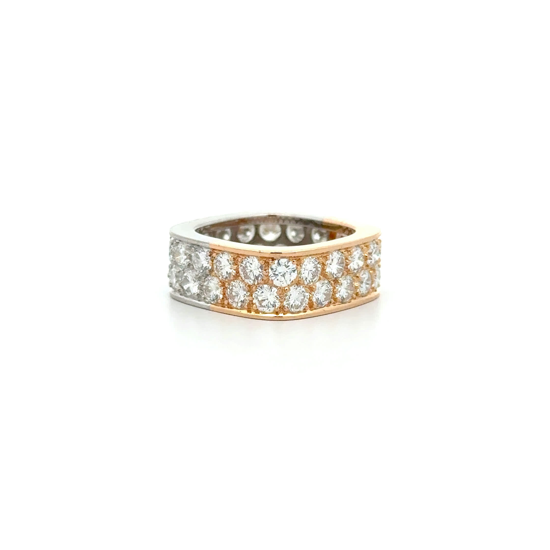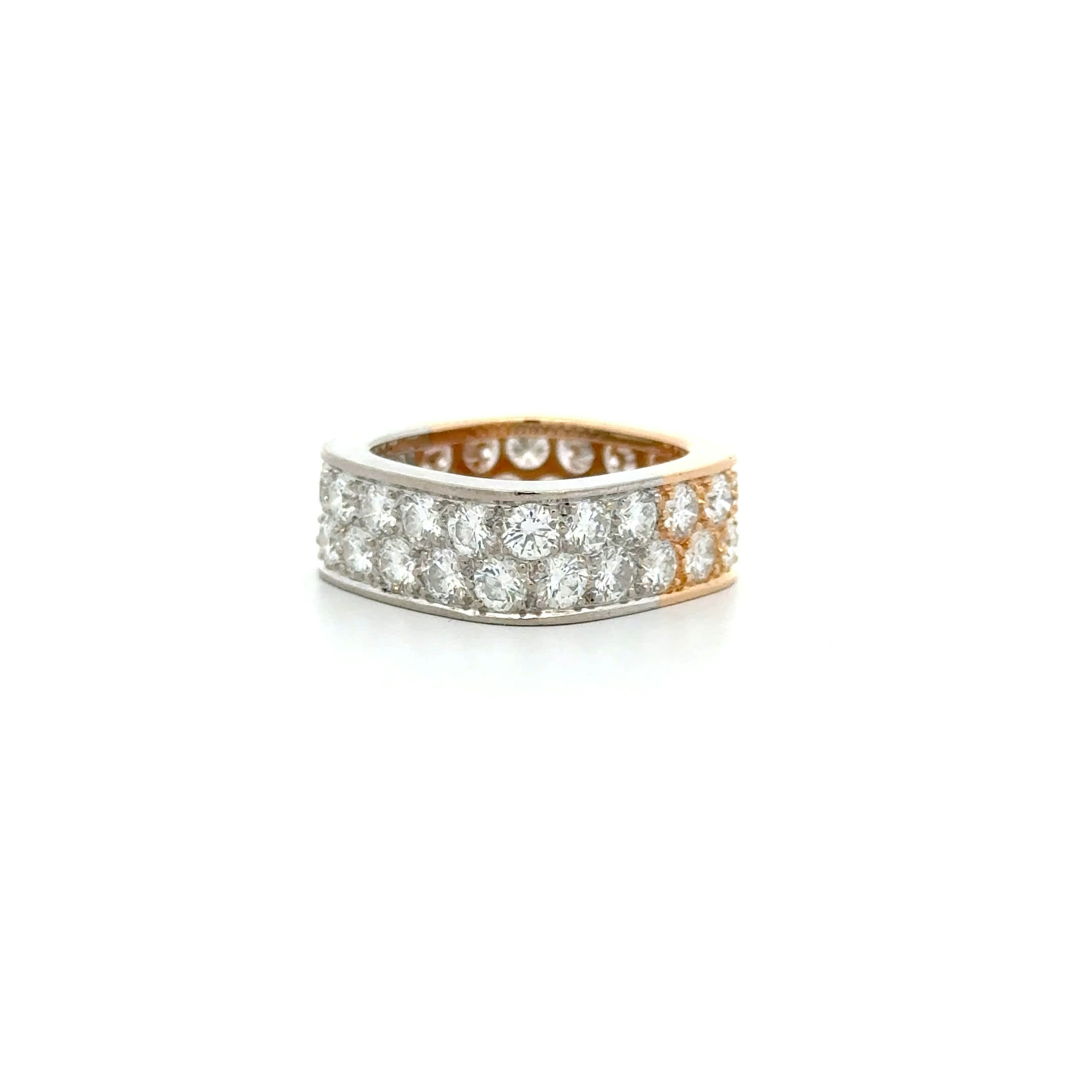 Ein Ring, der die Unendlichkeit in sich trägt – 39 Brillanten verschmelzen zu einem Tanz aus Licht und Ewigkeit, während warmes und kühles Gold Ihre Liebe in perfekter Harmonie umhüllt. Spüren Sie, wie 4 Karat pure Brillanz Ihre wertvollsten Momente für die Ewigkeit festhalten und jeden Blick in staunende Bewunderung verwandeln.