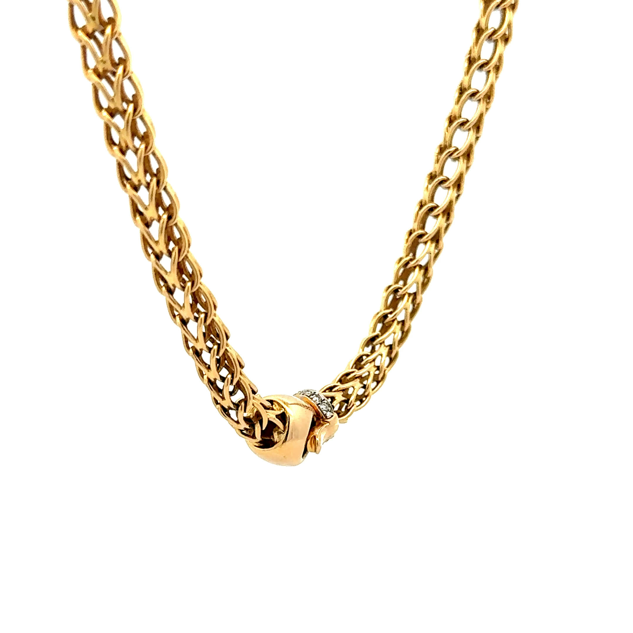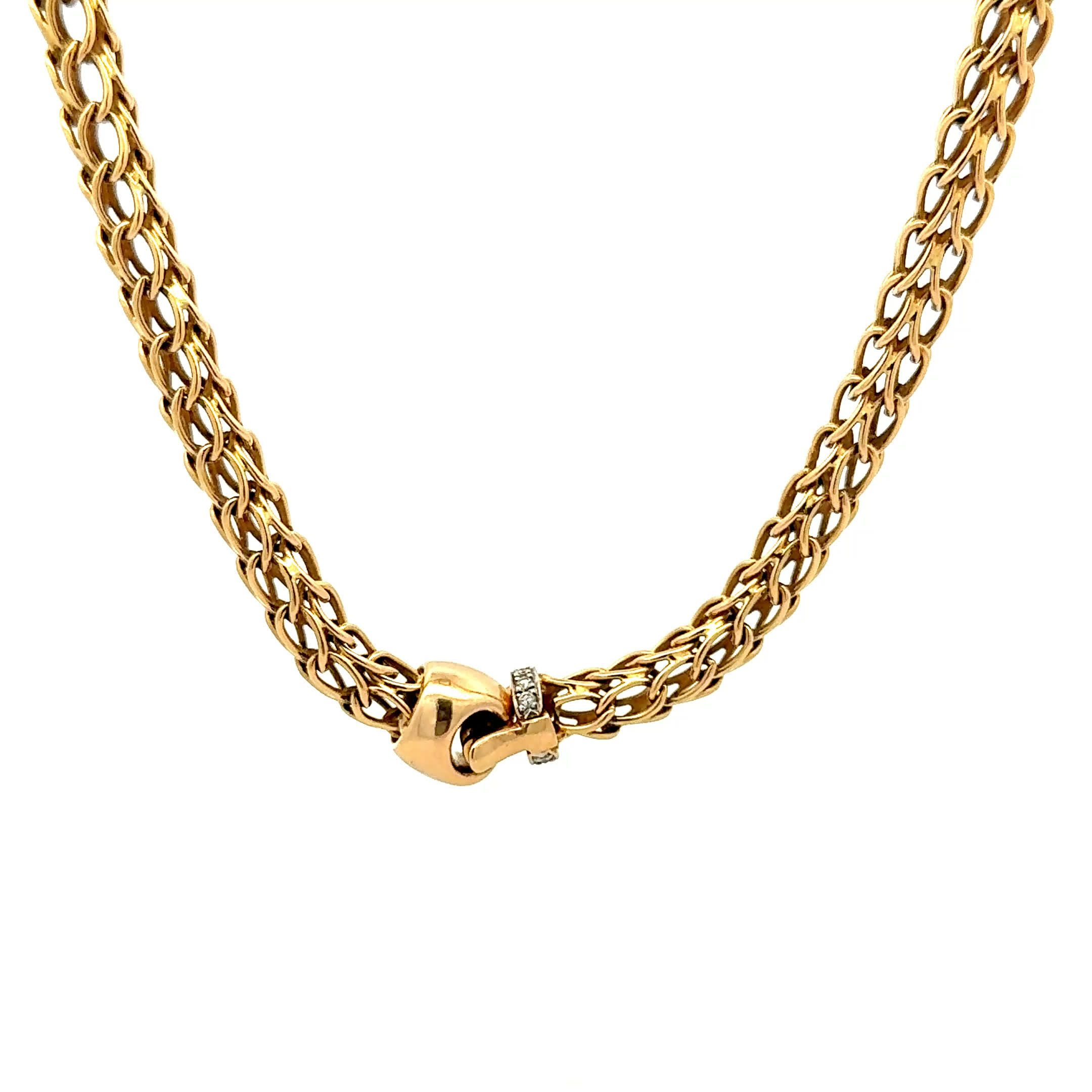 Diese vintage Goldkette aus 18 Karat Gold ist mehr als nur Schmuck – sie ist ein Versprechen ewiger Eleganz, das mit jedem Atemzug sanft auf Ihrer Haut ruht. Zwölf funkelnde Brillanten verwandeln jeden Moment in pure Magie, während das warme Gold Ihre natürliche Schönheit zum Strahlen bringt. Ein Erbstück von morgen, das Geschichten schreibt und Herzen berührt.