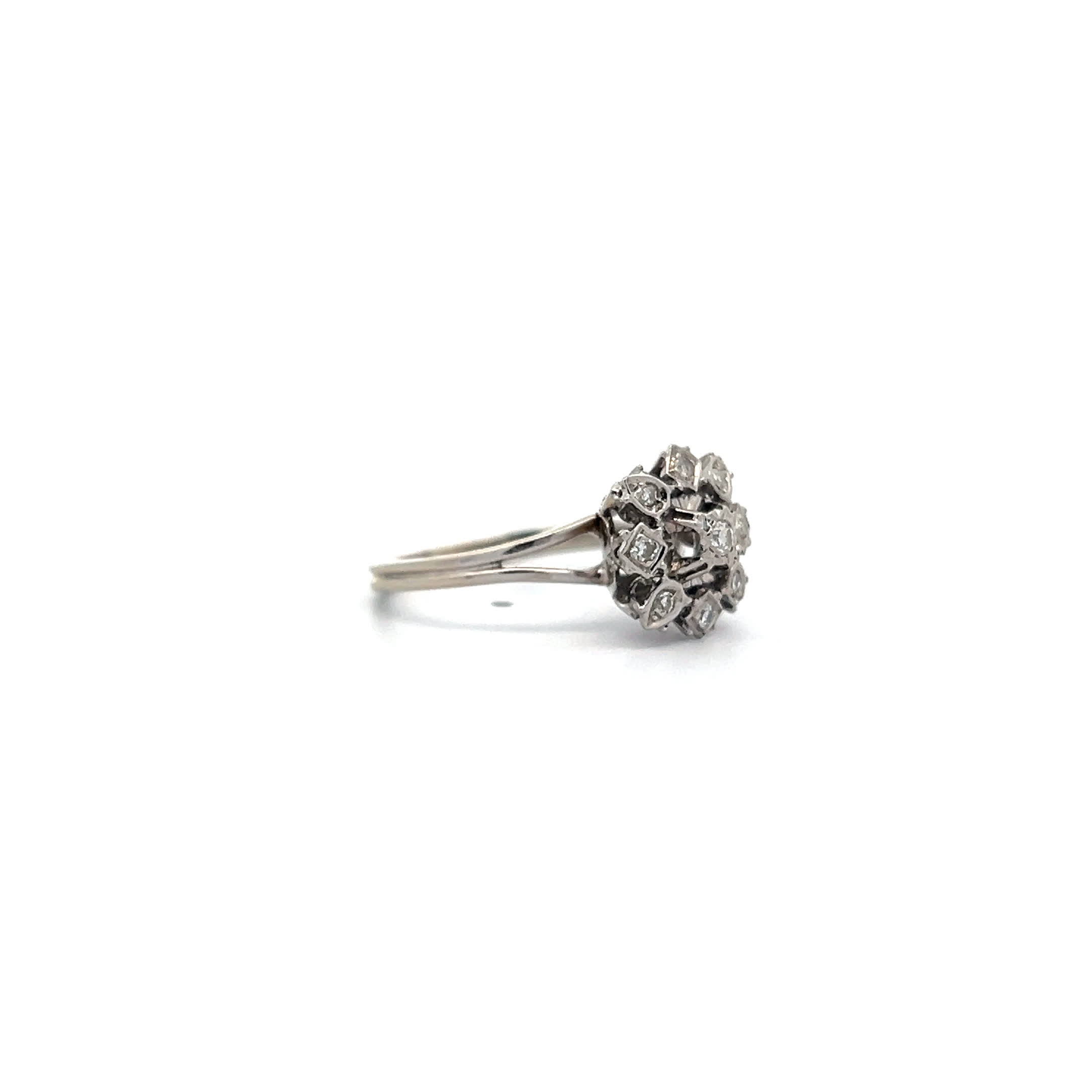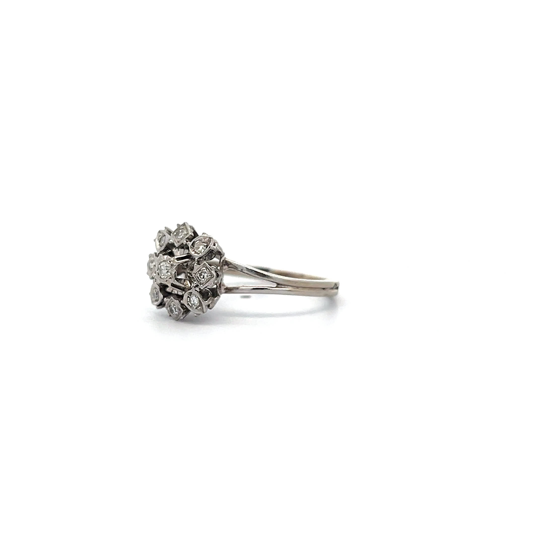 Wie zarte Blütenblätter im ersten Frühlingswind, so tanzen die neun Brillanten dieses Vintage-Rings im Licht und verwandeln jeden Moment in pure Poesie. Seine zeitlose Eleganz in 18 Karat Weißgold flüstert von vergangenen Liebesgeschichten und künftigen Versprechen – ein Schmuckstück, das nicht nur getragen, sondern gefühlt wird. "White Blossom" ist mehr als ein Ring: Er ist der stumme Zeuge Ihrer kostbarsten Augenblicke und lässt Ihr Herz bei jeder Berührung höher schlagen.