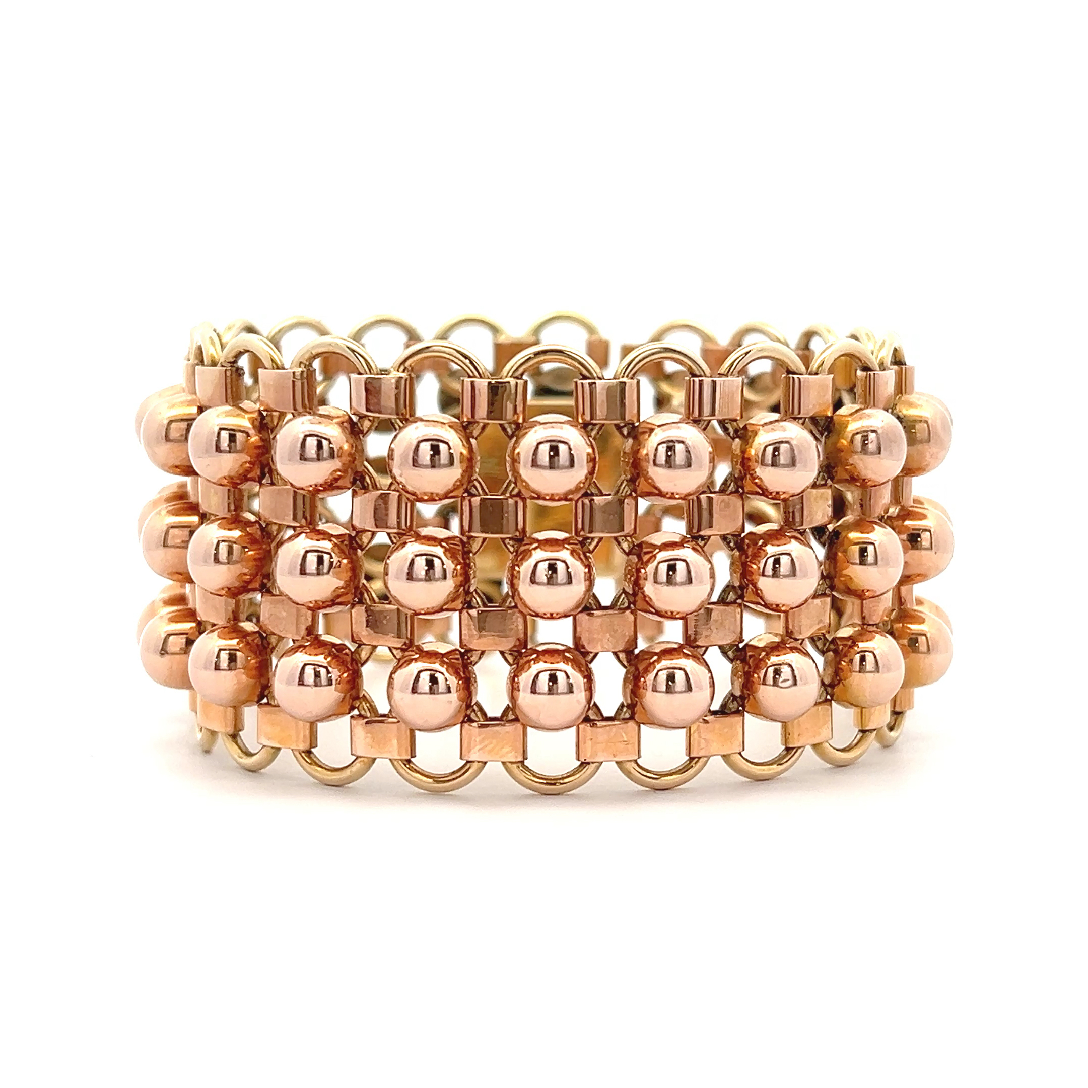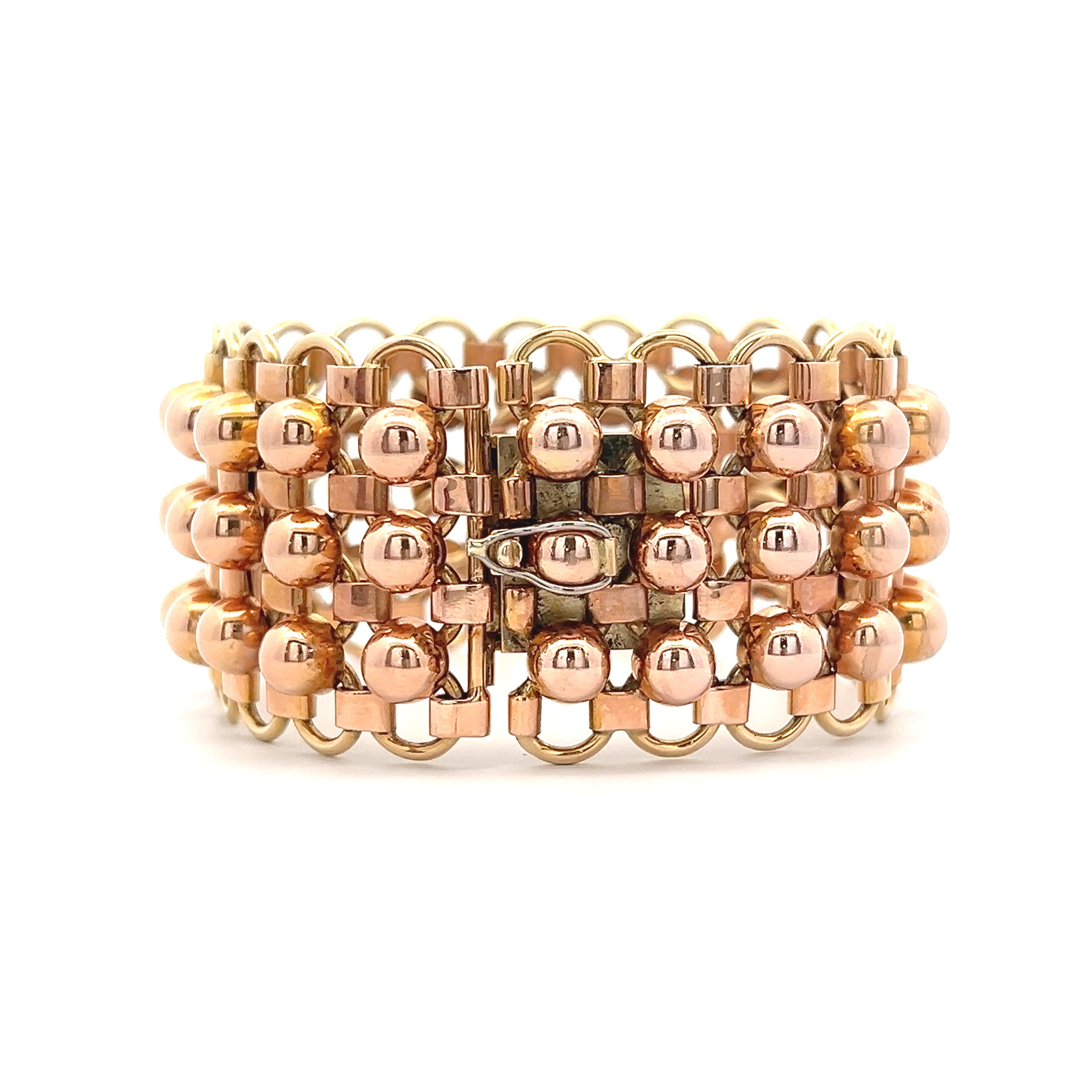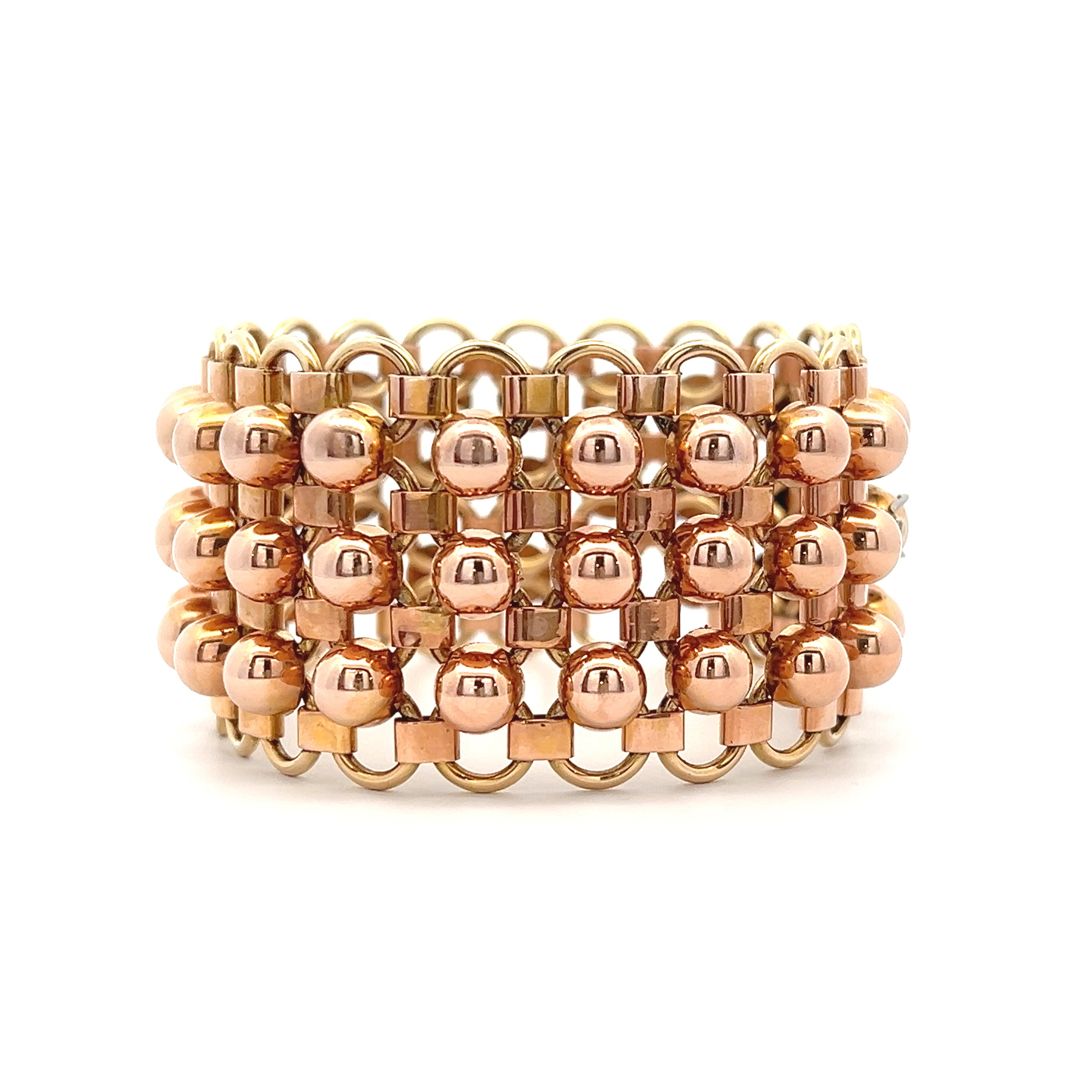 Dieses breite Armband aus 14 Karat Roségold und Gelbgold ist ein sinnliches Versprechen an die Ewigkeit, ein flüssiges Goldband, das sich warm an das Handgelenk schmiegt. Es ist mehr als nur Schmuck; es ist ein Erbe, das die Geschichten vergangener Generationen in sich trägt und zukünftigen Momenten des Glücks seinen warmen Glanz verleiht. Ein Stück zeitloser Eleganz, das man nicht nur trägt, sondern tief im Herzen spürt.