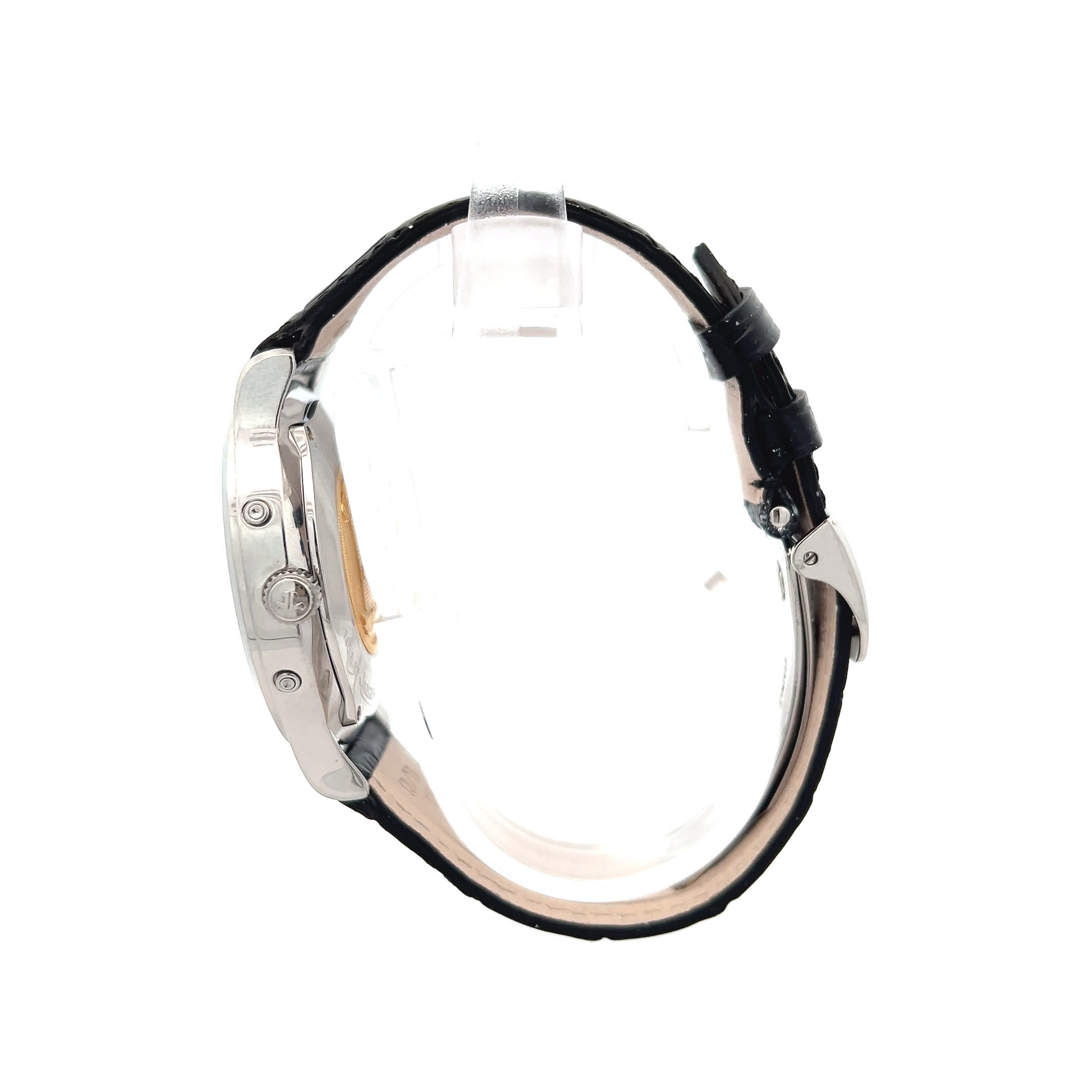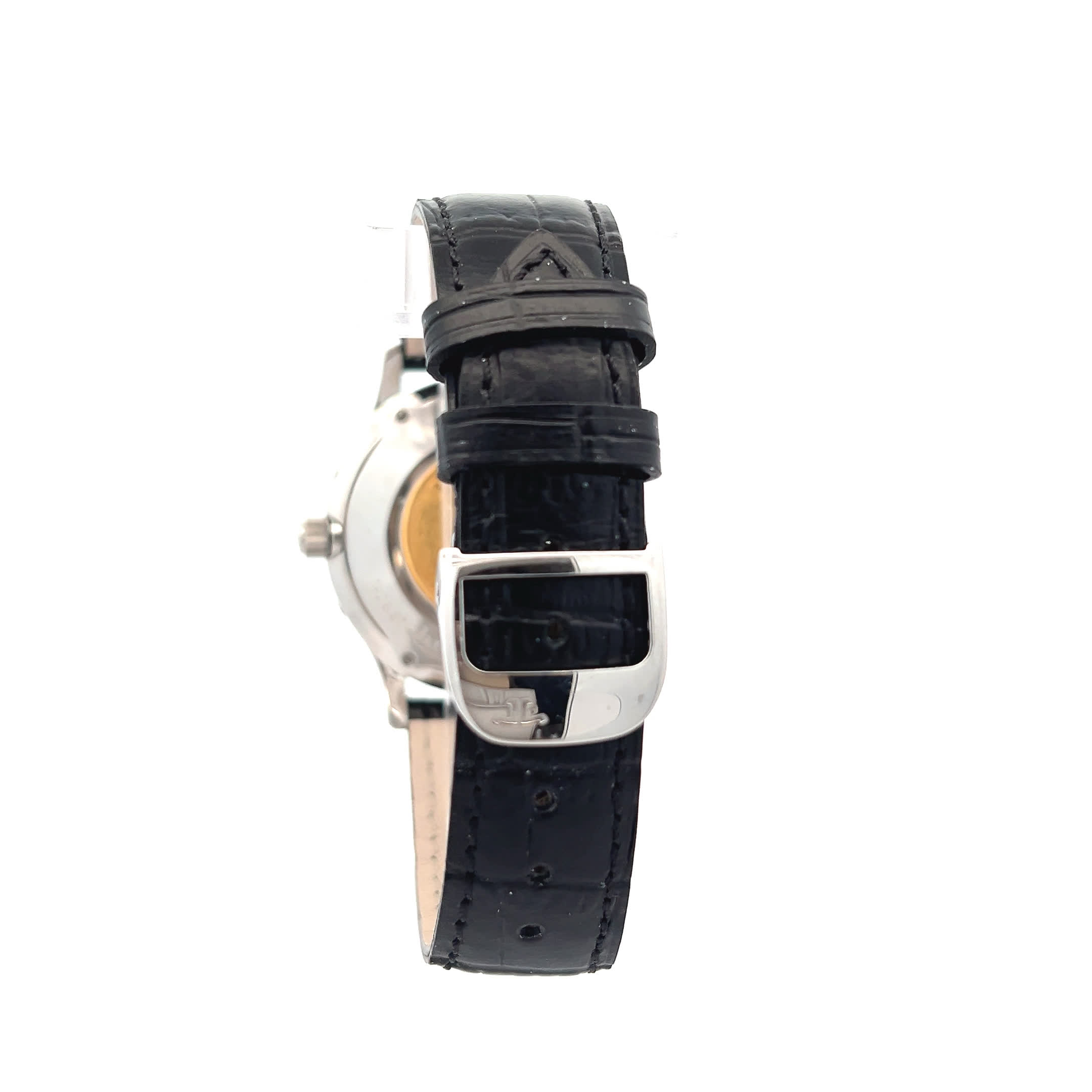 Ein Zeitmoment, der seit 1996 die wertvollsten Augenblicke des Lebens begleitet – diese Jaeger LeCoultre Master Calendar verkörpert die Poesie vergangener Jahrzehnte und flüstert Geschichten von Eleganz und Tradition. Ihr silbernes Zifferblatt spiegelt nicht nur die Zeit wider, sondern auch die Träume und Erinnerungen ihres Trägers, während das warme Lederarmband sanft das Handgelenk umschmeichelt. Eine Uhr für Menschen, die verstehen, dass wahre Schönheit in der Zeitlosigkeit liegt – ein treuer Begleiter für alle großen und kleinen Momente, die das Leben kostbar machen.
